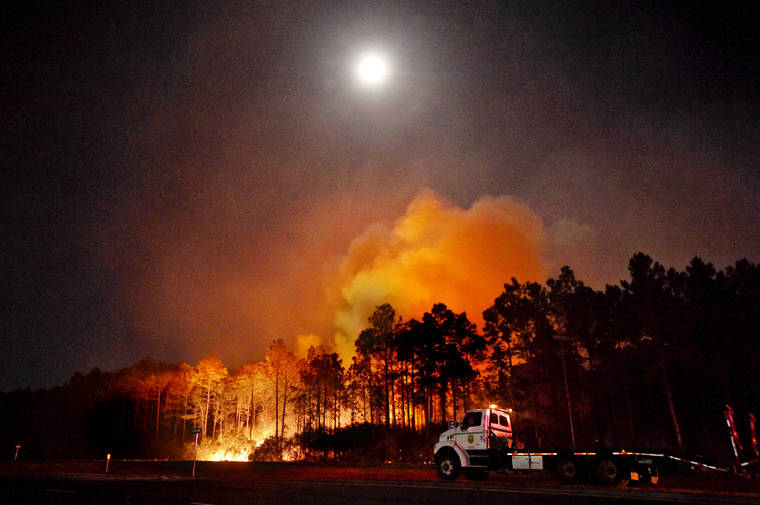 — firefighters and emergency workers battled two massive wildfires sunday in an area of the florida.